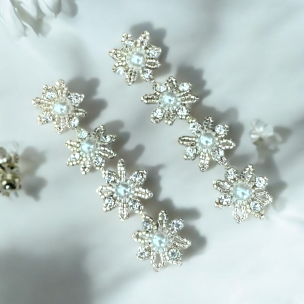 Flor de Luna es una joya inspirada en la pureza de las flores que florecen bajo la luz de la luna. Su diseño lineal y elegante está compuesto por pequeñas flores tejidas a mano, que brillan con cada movimiento, evocando romanticismo y luz sutil.